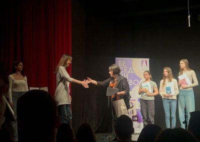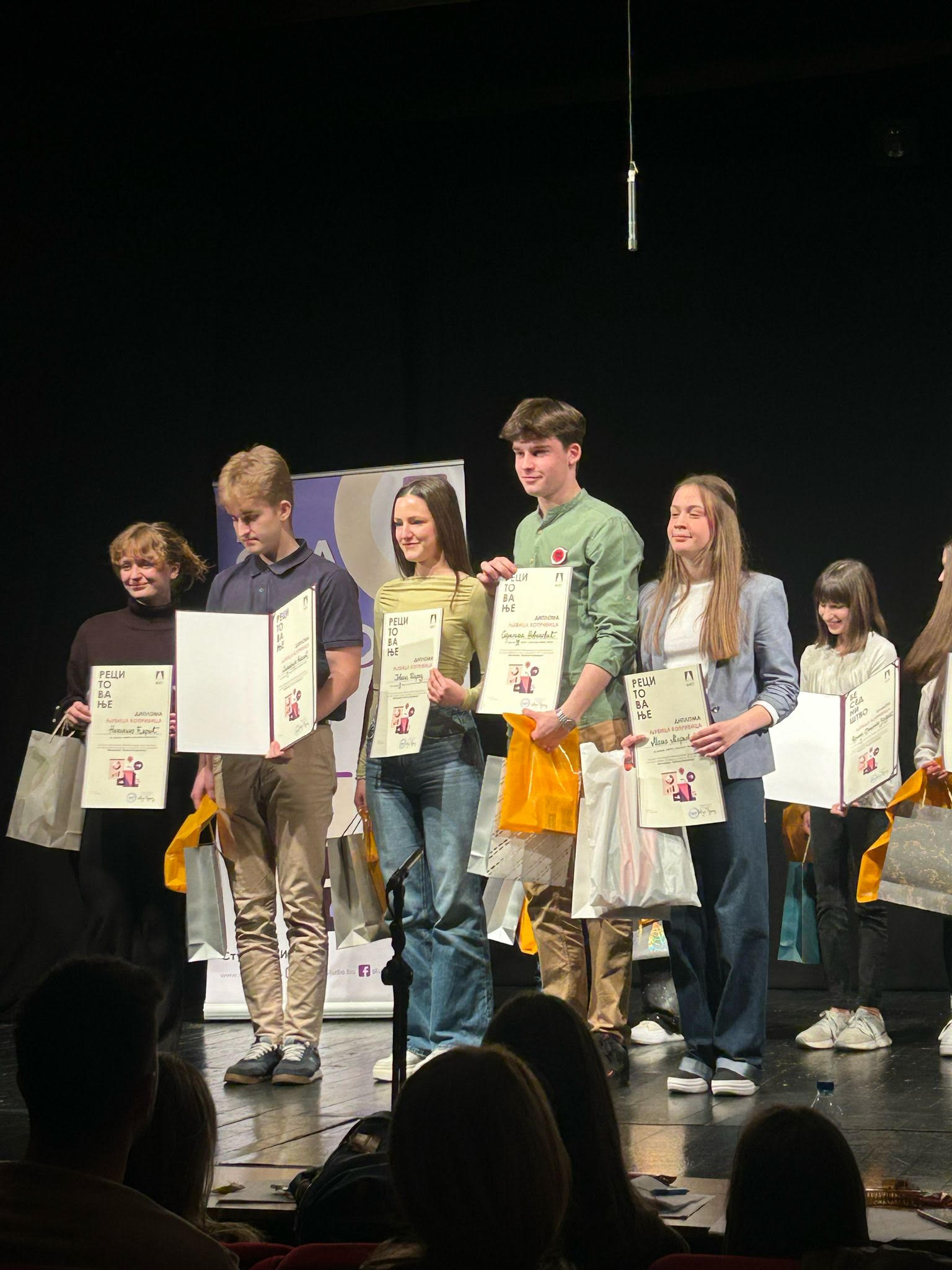 Све три матуранткиње су говориле искрено, аутентично и полетно о темама које их се тичу. Громки аплаузи публике су пропратили ове успехе наших финалисткиња, којима се с правом сви поносимо, а највише њихова професорка српског језика и књижевности, као и разредни старешина, Биљана Петровић.