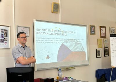 Ученици су имали прилику да чују више о бесплатном курсу чешког језика, као и лично искуство наше ученице Милице Пешић (4/3), која је похађала летњу школу у Брну. Уследио је квиз знања о Чешкој, а најуспешнији учесници добили су симболичне награде.