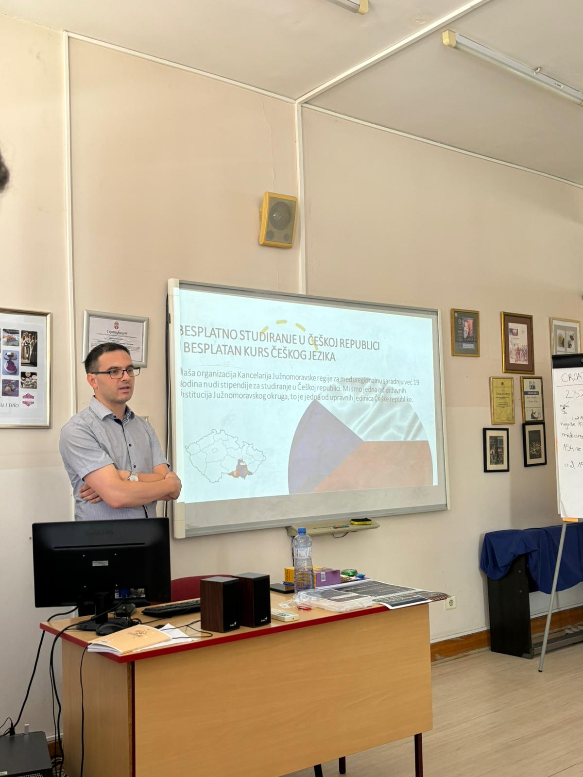Више од деценије траје успешна сарадња наше школе и представника Канцеларије Јужноморавске регије, уз подршку Амбасаде Чешке Републике у Србији. Она се огледа у бесплатном курсу чешког језика, летњим школама у Брну и стипендијама за наставак школовања у Чешкој.