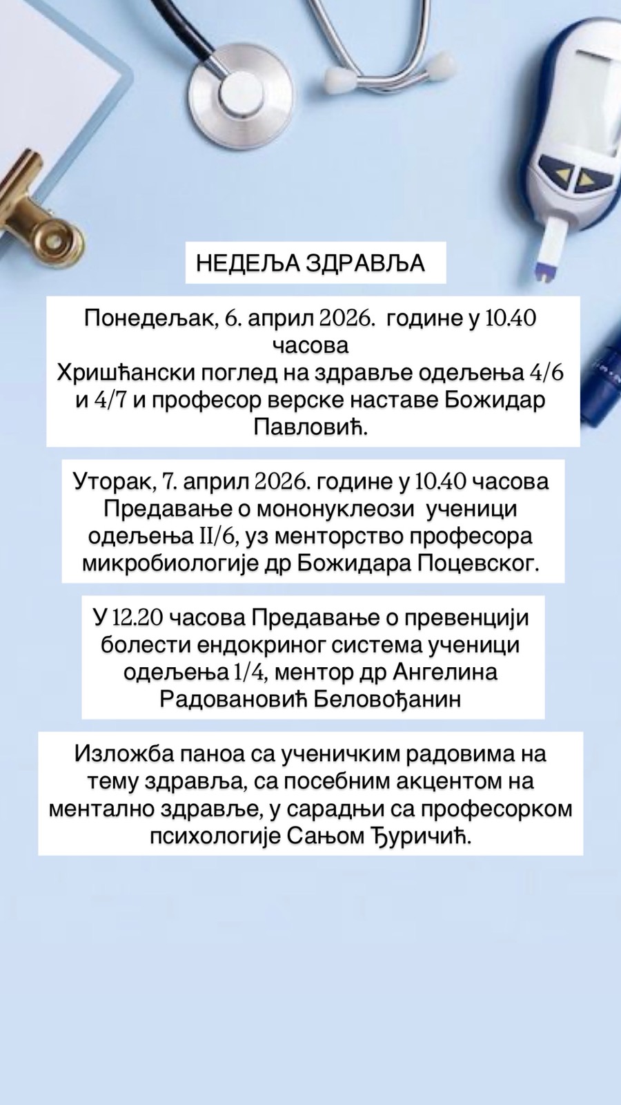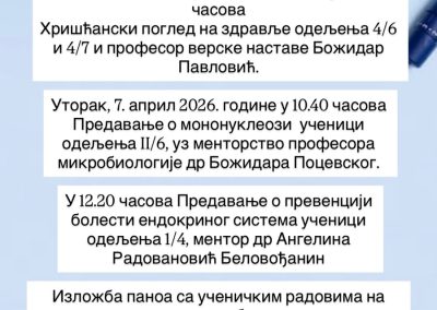 НЕДЕЉА ЗДРАВЉА – Распоред предавања