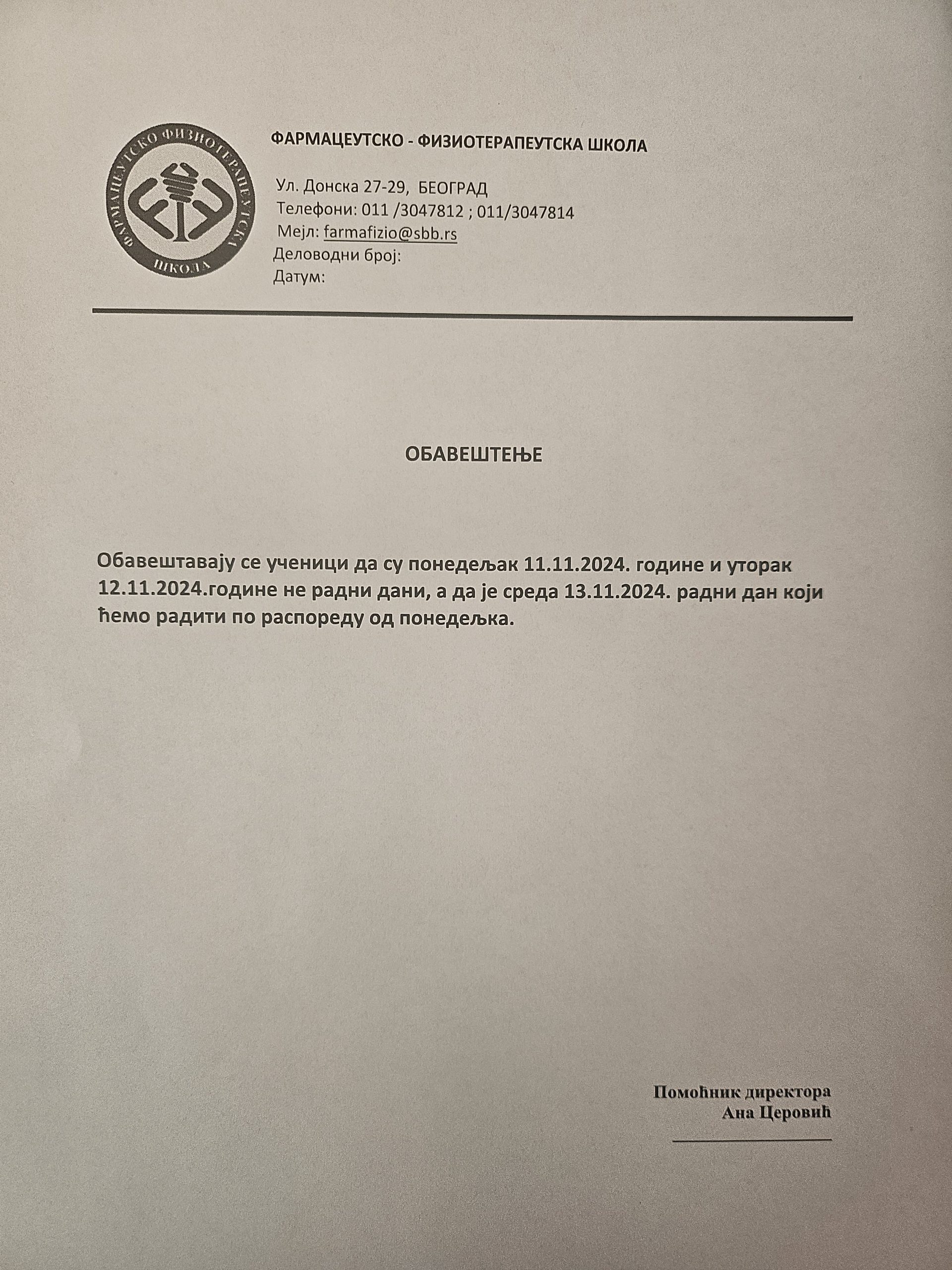 РАСПОРЕД ОТВОРЕНИХ ВРАТА, ПРИЈЕМ РОДИТЕЉА, ШКОЛСКА 2024/2025. ГОДИНА