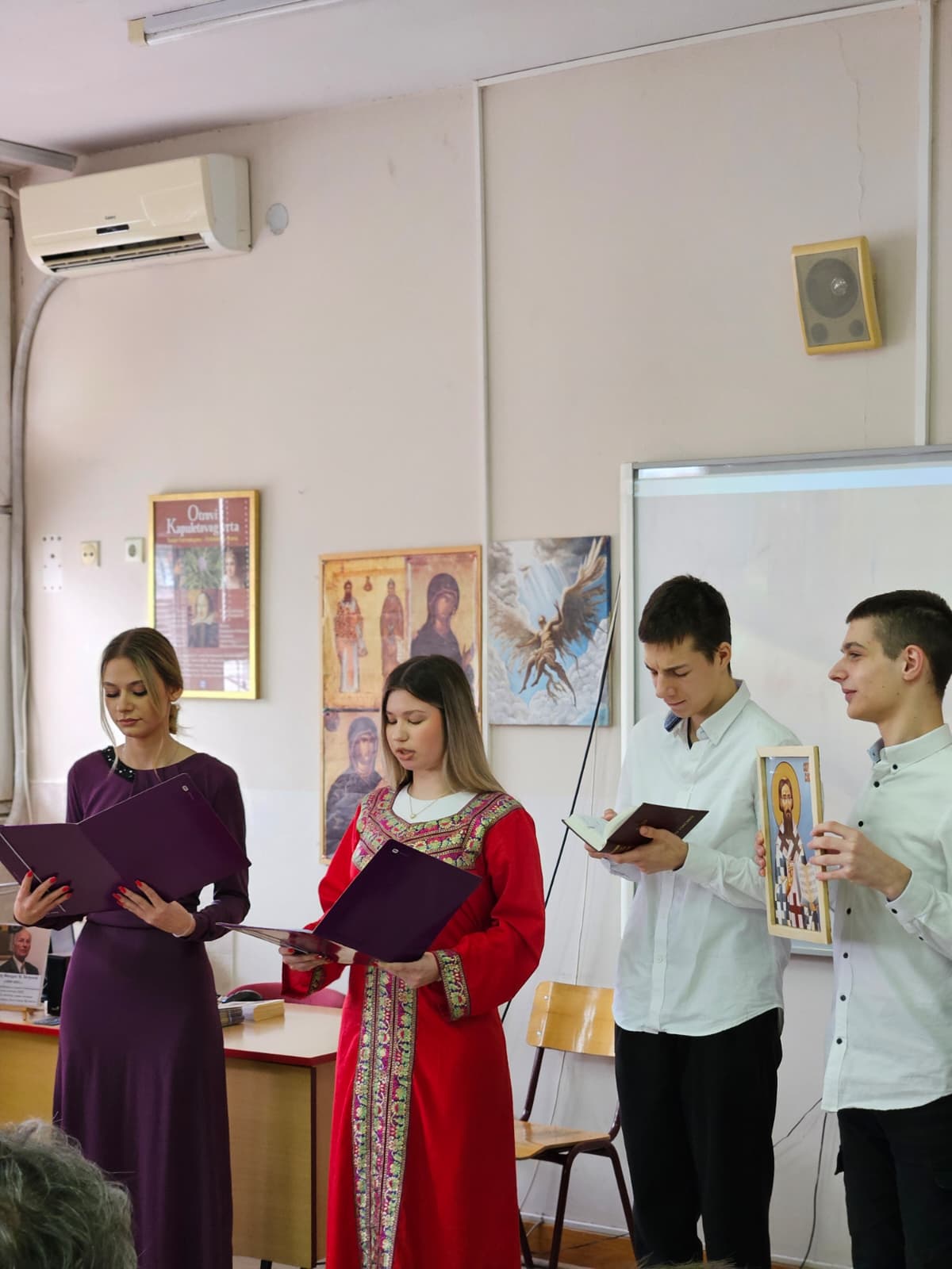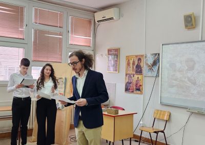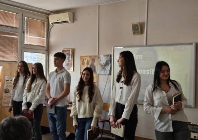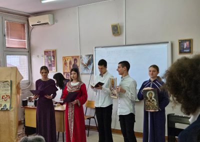 Кроз песму, рецитације и пригодне текстове, ученици су подсетили на значај личности и дела Светог Саве, као и на вредности које је утемељио – знање, заједништво, хуманост и посвећеност образовању.
