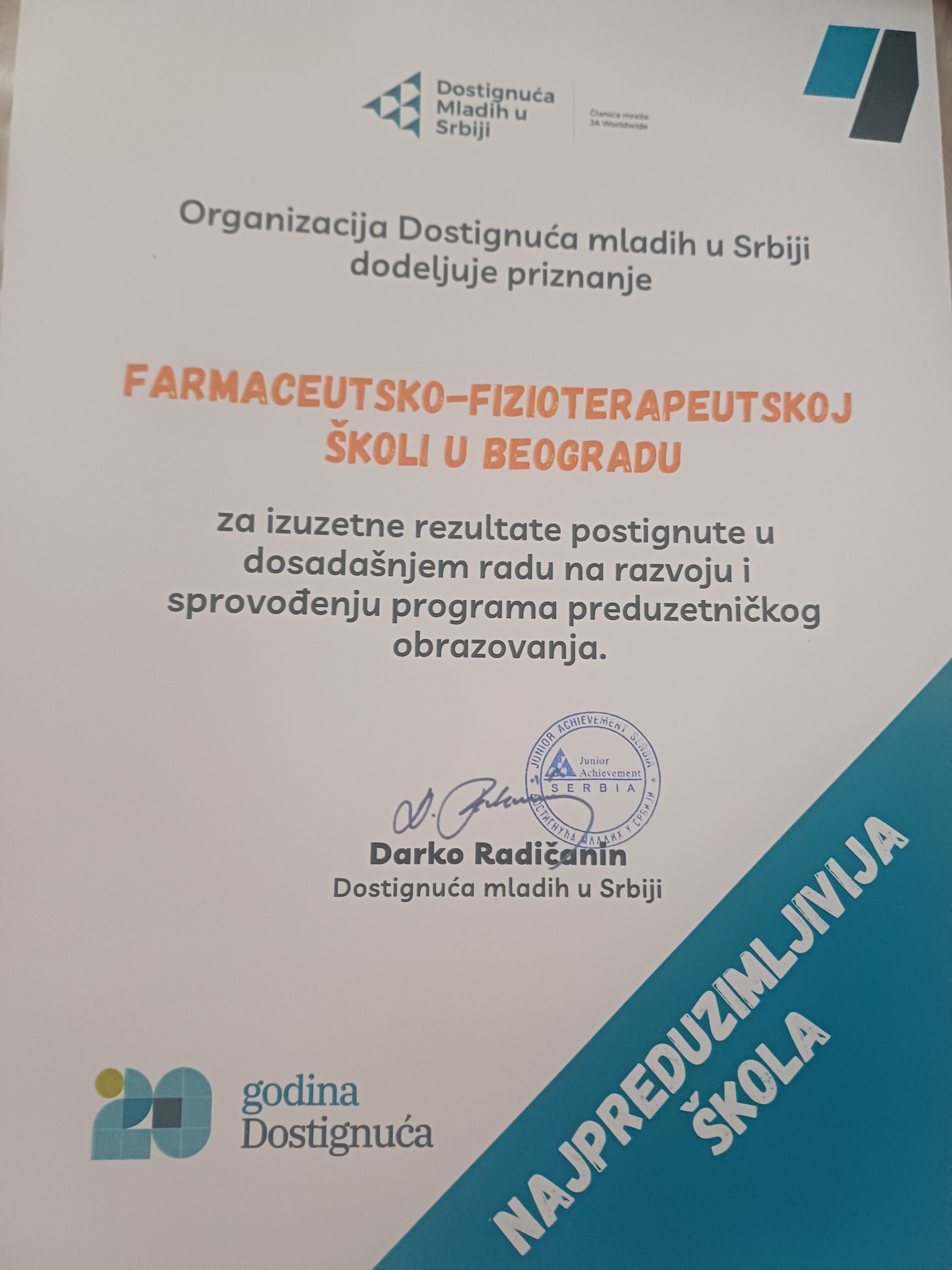 Са великим поносом објављујемо да је Фармацеутско-физиотерапеутска школа освојила награду за Најпредузимљивију школу у Србији!