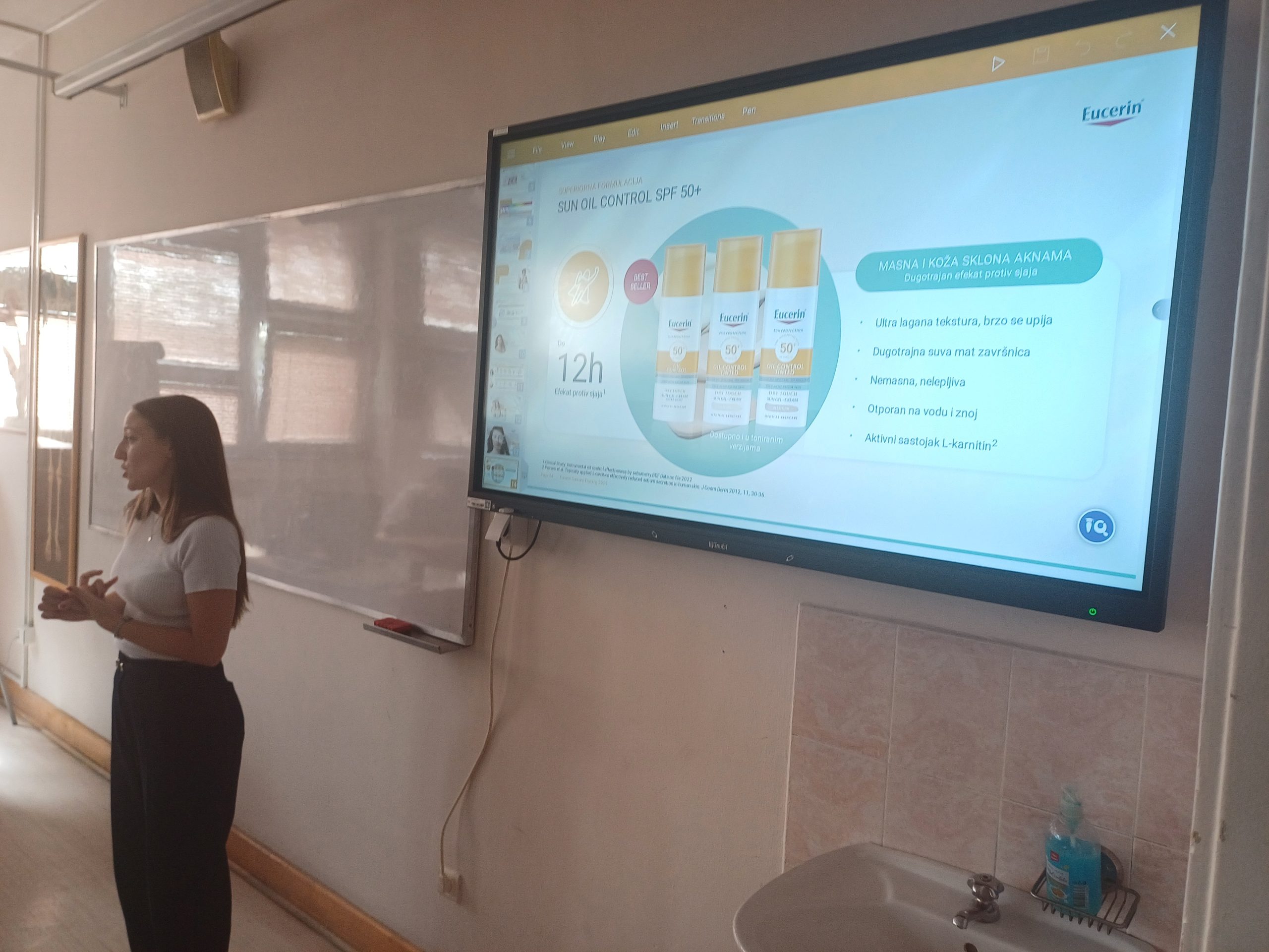 Данас је у нашој школи одржано едукативно предавање у организацији компаније Beiersdorf, познате по дермокозметичком бренду Eucerin, на тему Препарати за заштиту од сунца.