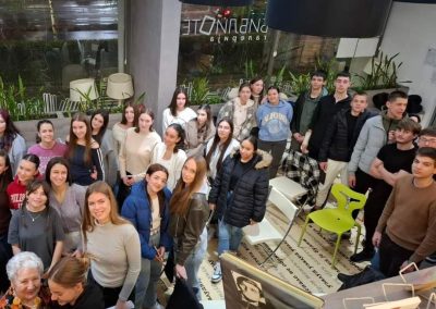 Лингвистичка секција школе и Театар Фармакопеа су изнели своја виђења о језичко – стилској структури најновије српске поезије и покренули сценски дијалог о питањима језика у тексту, али и на и са сцене. Коју улогу има поезија на сцени, како (из)говорити стихове да би они добили нови емотивни идентитет.
