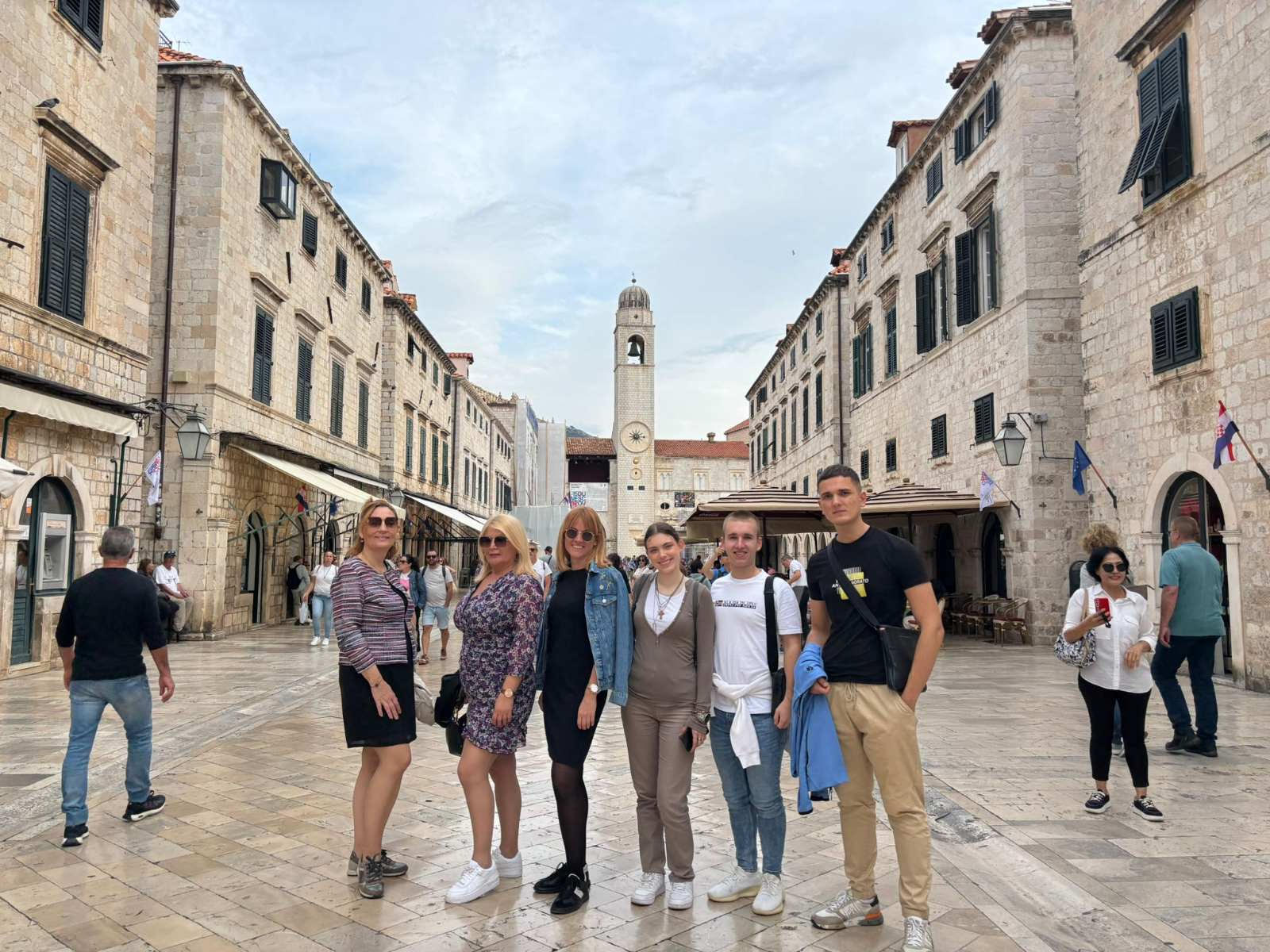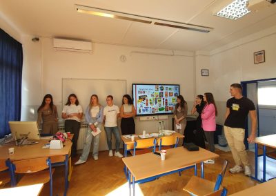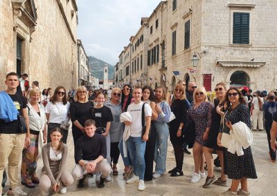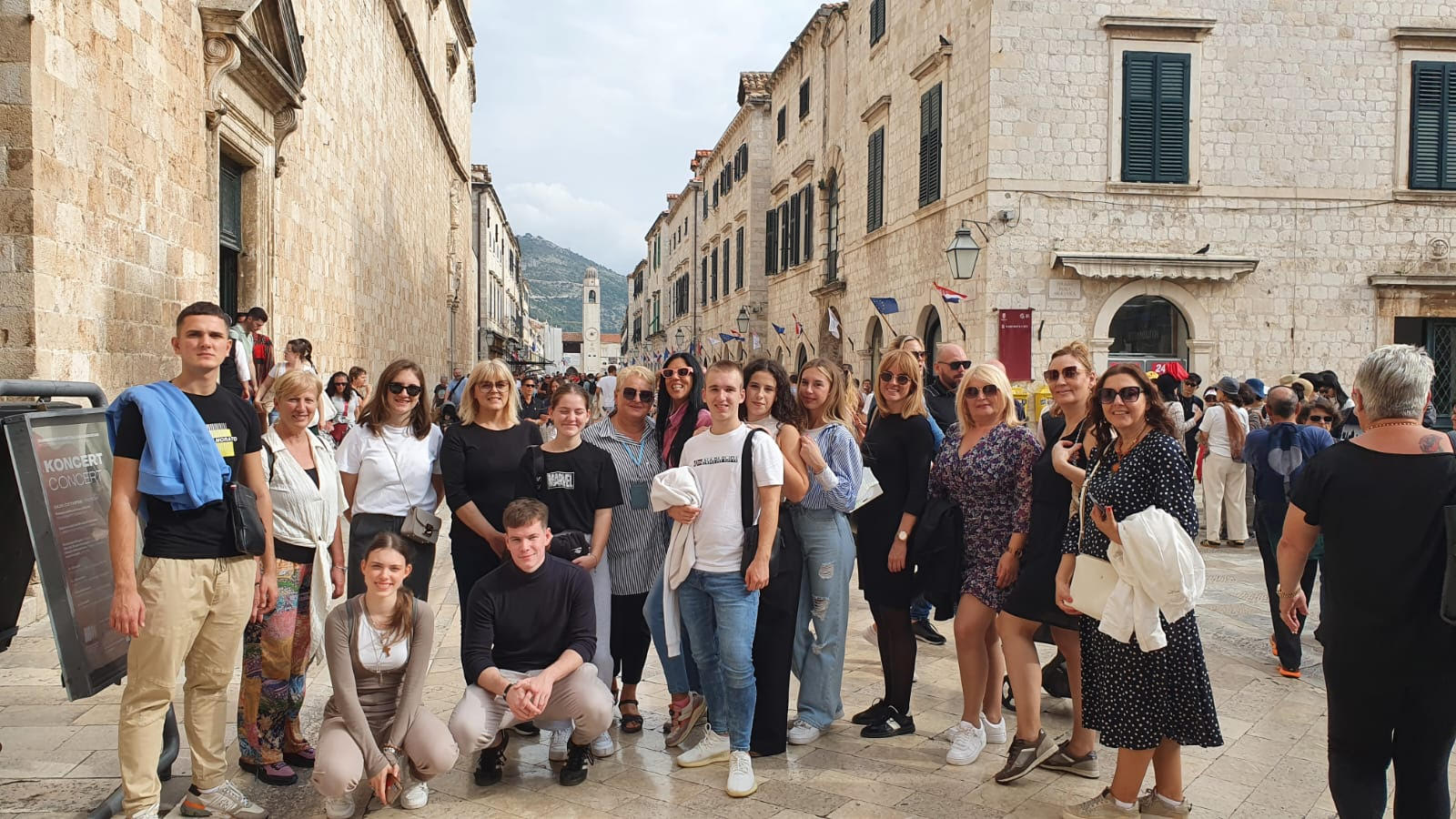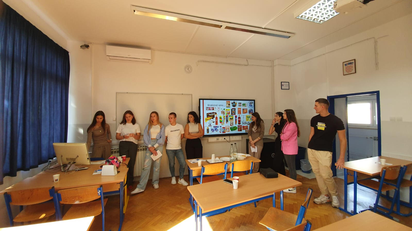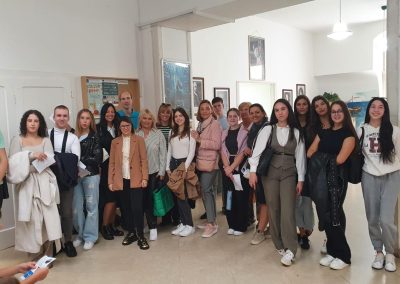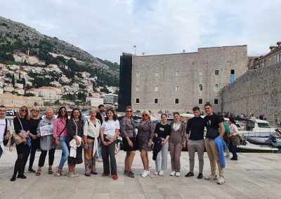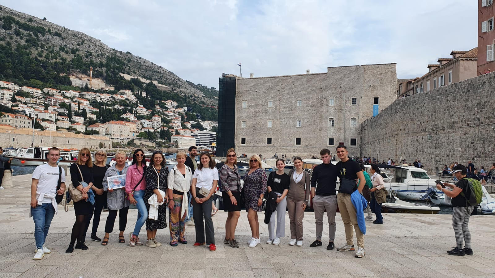 У О.Ш. Марина Геталдића срдачно су нас дочекале професорице Сања Јурас и Ина Балетић, које су с ученицима приредили пригодан програм. Наступио је школски хор са глазбеном нумером: Ла Мусица di Notte, те су ученице рецитовале своје литерарне радове и гостима приближили и стари Дубровачки говор и повеле у обилазак школе у старом Дубровачком језгру. Ученици медицинске школе Дубровник истакли важност пажљивог бирања намирница без штетних додатака- адитива- Е бројева. Сви су запевали едукативну пјесму:“ Е број, стани стој“! Дружење и рад на пројектима настављен је у Медицинској школи Дубровник, где су ученици и њихови ментори вриједно радили на усклађивању презентација за Смотру Е медика. Ученици су презентовали своја истраживања 3 Д примени у медицини, стоматологији и математици из свих партнерских школа из Сарајева, Београда, Ријеке и Дубровника, те су приказали израђивање 3Д модела у својим школама. Видели смо 3Д моделе зуба, срца, коцки, молекула који вјерно приказују структуре потребне за наставу у струци. Други дан размене су сви улесници имали стручно вођену туру кроз Повиесну језгро града Дубровника под вођством стручног водича госпође Антее Глумац- Барбир, која се и овај пут одазвала и срдачно поклонила туру нашим гостима. Остатак дана провели смо у раду, дружењу и уживању у Граду подно Срђа. Посљедњи дан размене судионици су имали прилику присуствовати традиционалној Дубровачкој трпези и упознати се са Дубровачим делицијама.