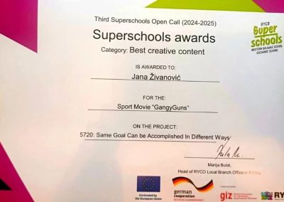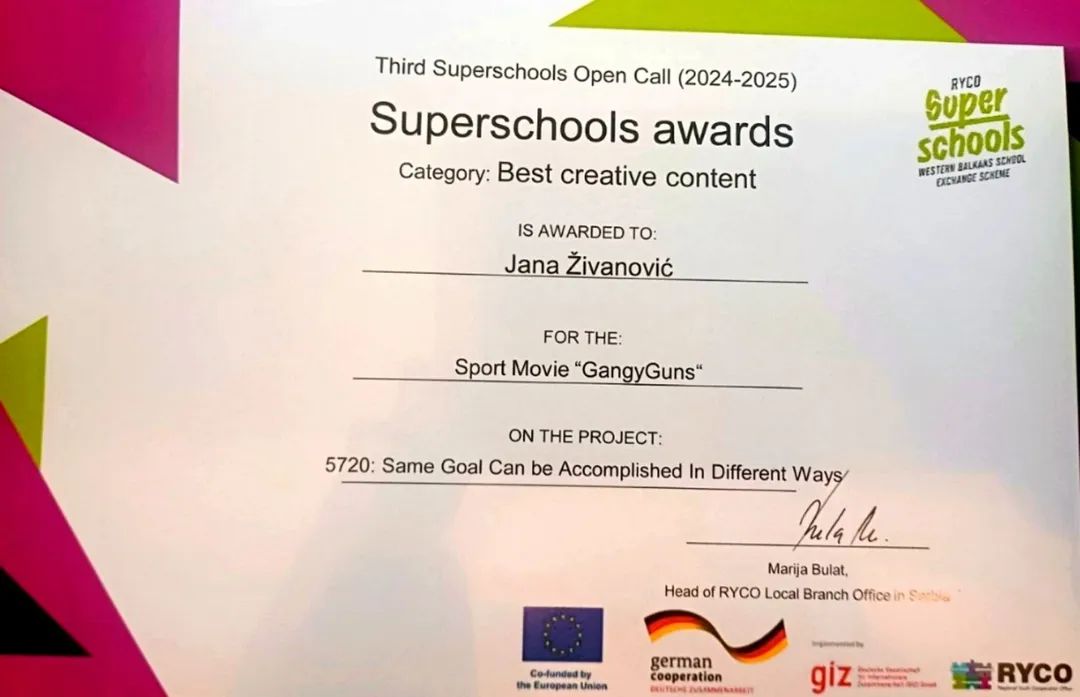 Поносни смо на наше колегинице Донку и Раду, као и на наше ученике, јер су својим трудом и креативношћу донели чак две награде у оквиру пројекта RYCO – Супершколе 2024/2025: