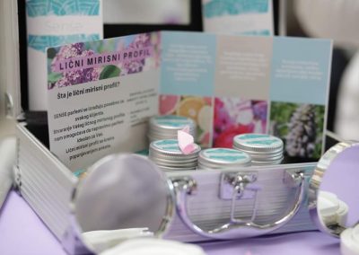 Чиме се бавимо Sense је компанија која се бави производњом ручно рађених, природних парфема у чврстом облику. ОПИС ПРОИЗВОДА Лични мирисни профил Састав Горња, доња и средња нота Veliki parfem Mali parfem Parfem u ogledalu Parfem u medaljonu