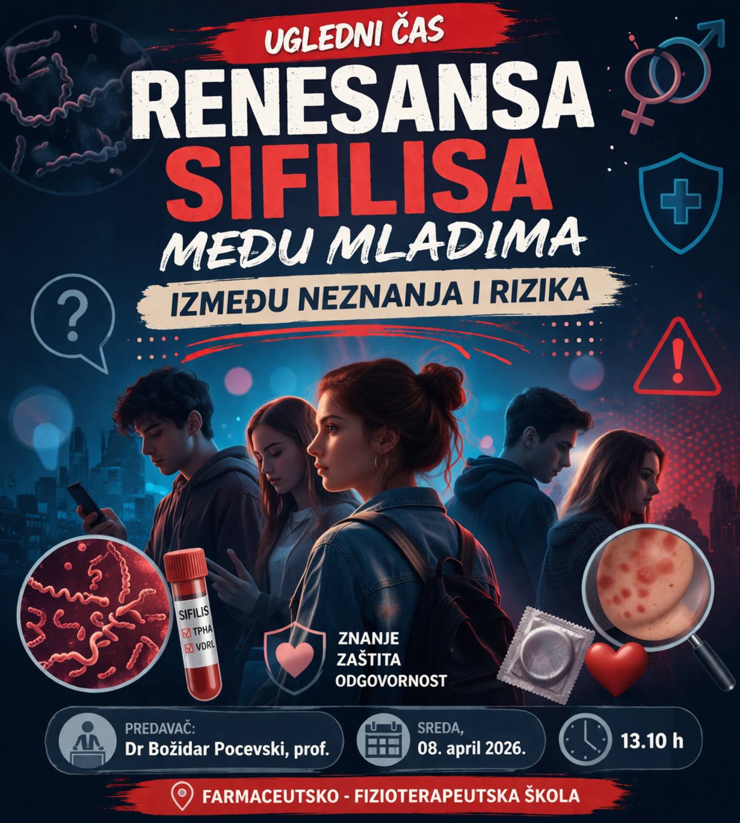 У оквиру „Недеље здравља“, данас је др Божидар Поцевски одржао предавање „Ренесанса сифилиса међу младима – између незнања и ризика“